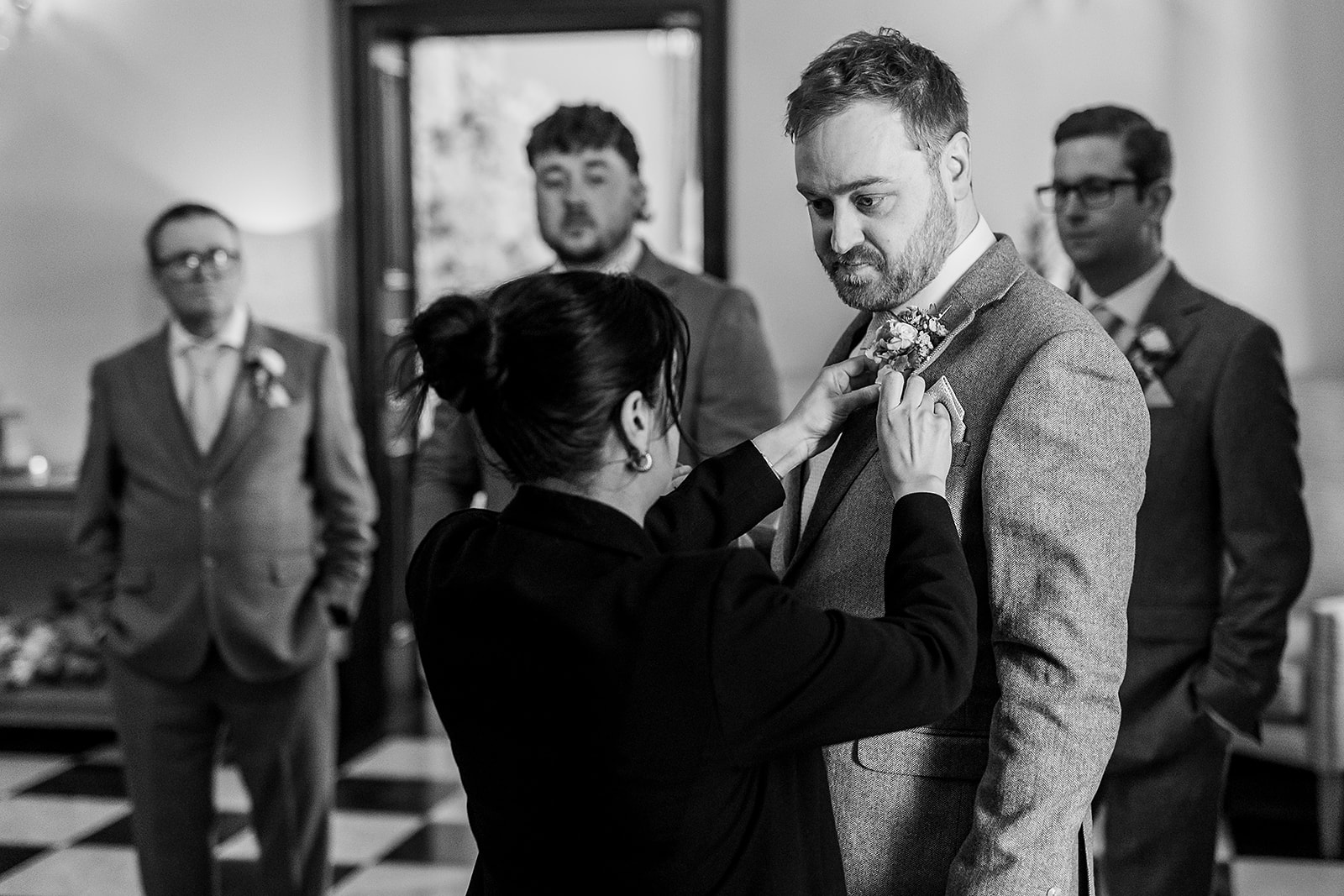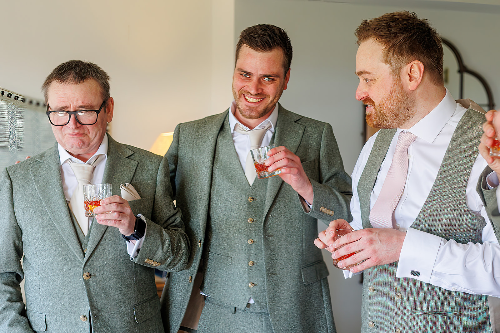 Over on the other side, the groomsmen had a slightly calmer start… focusing on getting ready and sampling some whiskey. Whether it was “impressive” or not is up for debate, but the photos definitely tell a story!