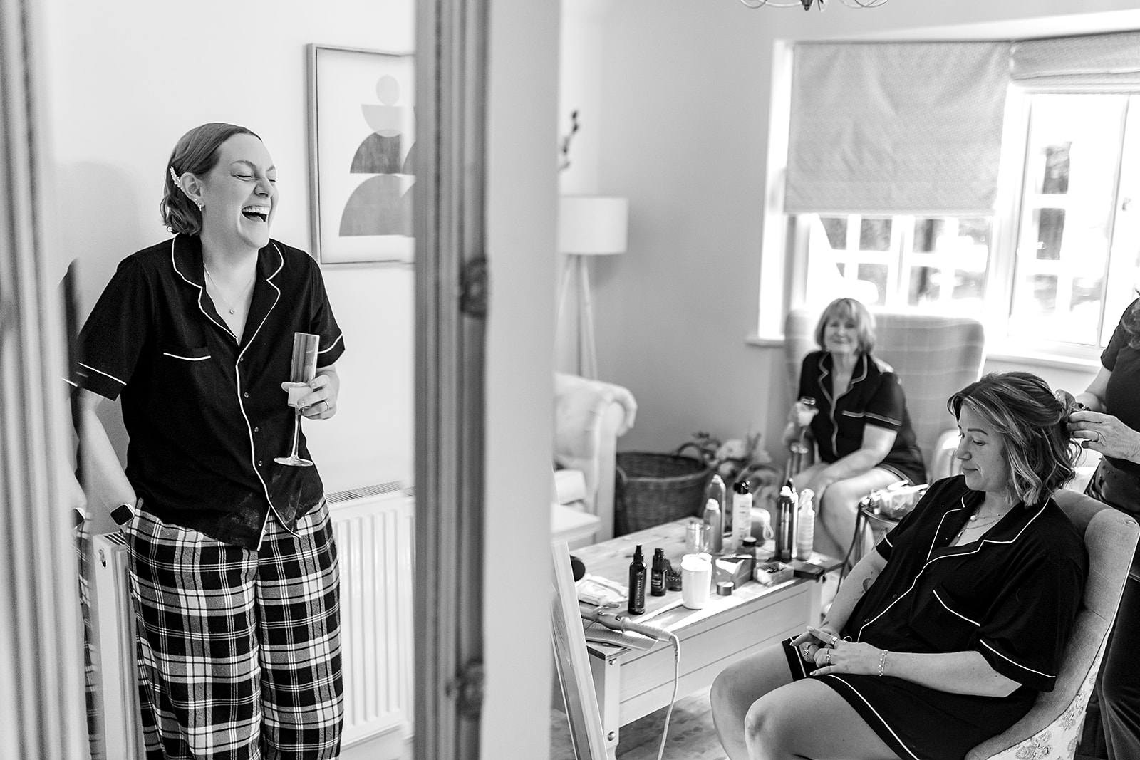 Sarah’s morning started early, and by the time I arrived, the energy was already in full swing. She was surrounded by a brilliant group of friends, and the laughter was constant. One standout moment was the now-iconic nickname “cone head” , which I’m hoping has stuck well beyond the wedding day!